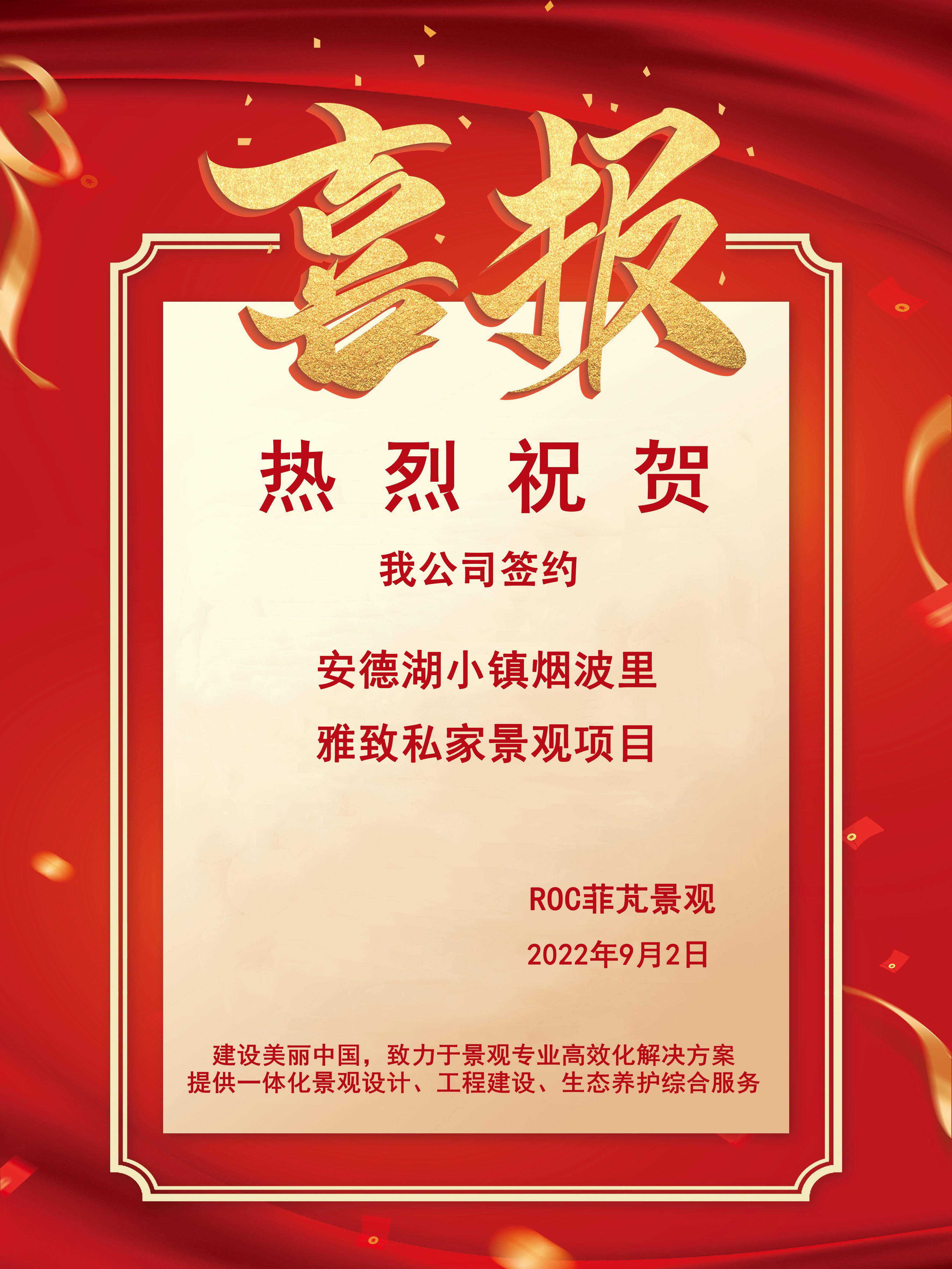 贺我公司项目签约,我公司将以专业的景观设计水平和精细的景观施工技术打造优质的精品工程,质赢未来!...